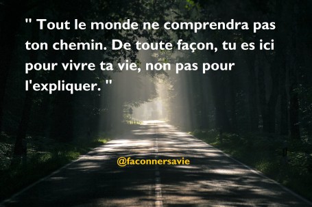 » Tout le monde ne comprendra pas ton chemin. De toute façon, tu es ici pour vivre ta vie, non pas pour l’expliquer. «