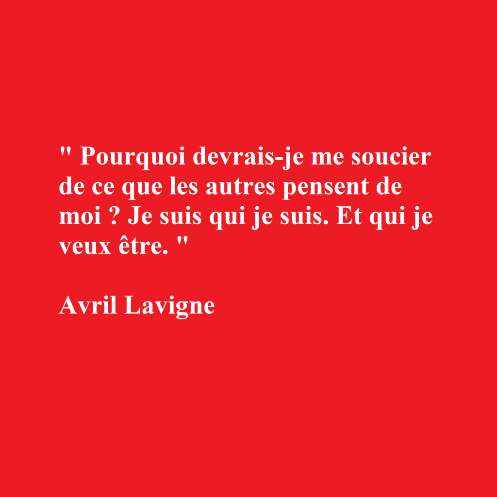 8/ « Pourquoi devrais-je me soucier de ce que les autres pensent de moi ? Je suis qui je suis. Et qui je veux être. Avril Lavigne