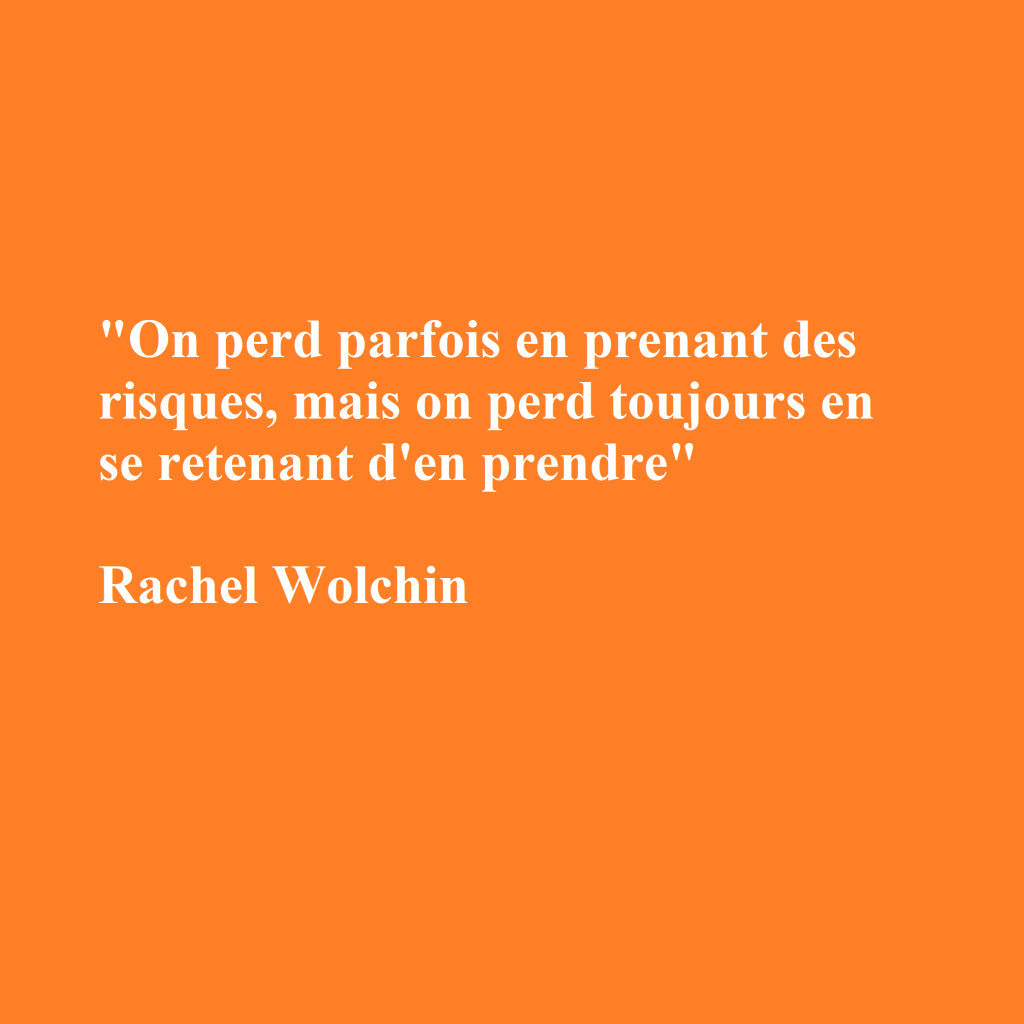 10/ « On perd parfois en prenant des risques, mais on perd toujours en se retenant d’en prendre ». Rachel Wolchin